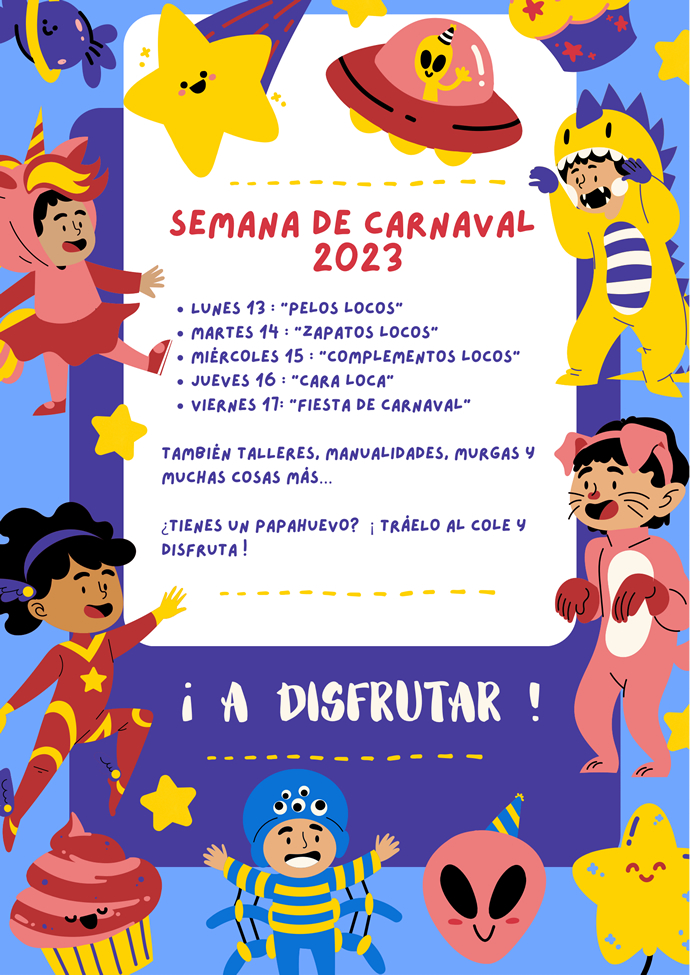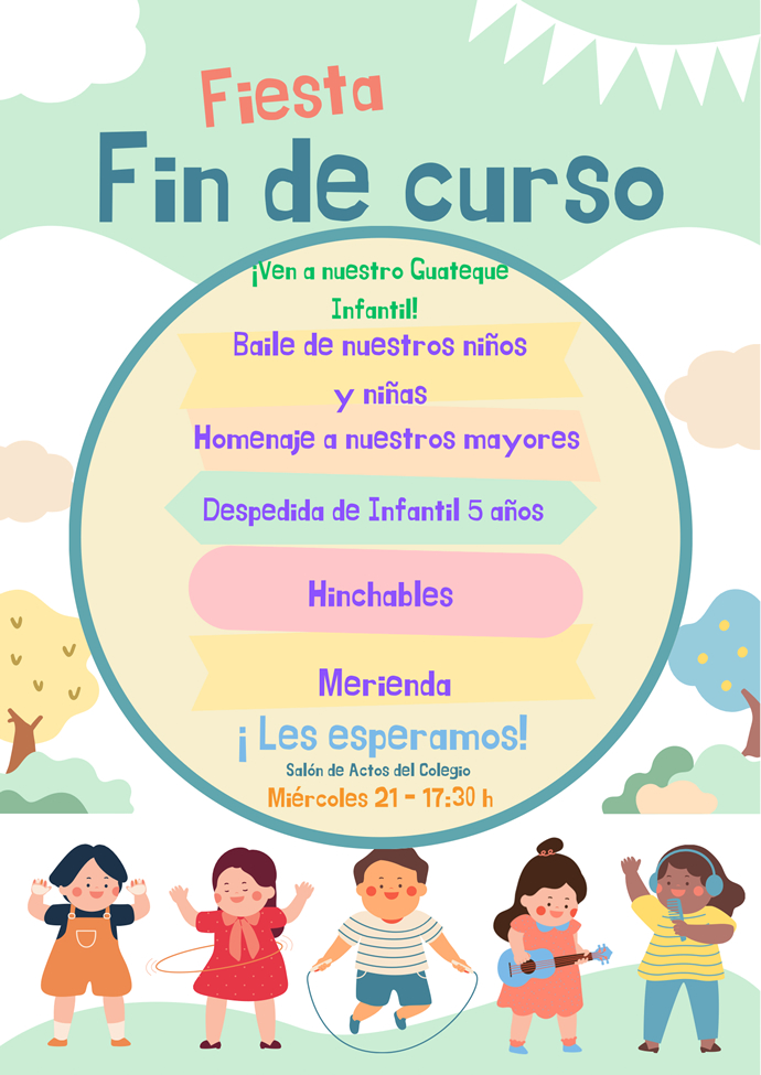 Martes 20 de diciembre: Fiesta navideña de Educación Infantila las 17.00 horas en el Salón de Actos del Colegio. Recuerden que los niños/as deben estar en su clase a las 16.30 horas ya vestidos y arreglados. La entrada será por la puerta de Infantil.