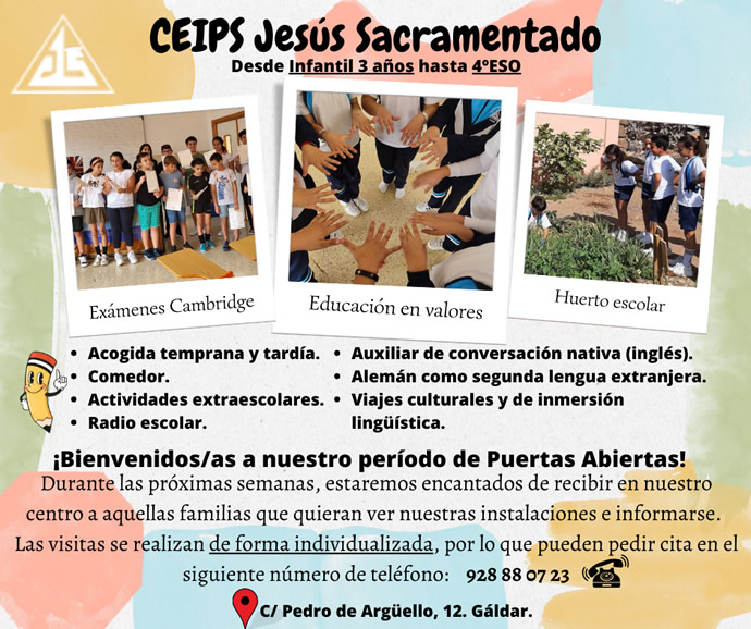 El horario para este día, será de 8.00 a 13.00 horas para Secundaria y de9.00 a 13.00 horas para Infantil y Primaria.
