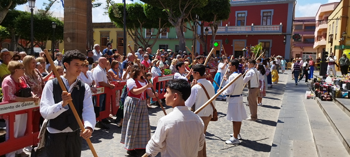 Cómo ya es tradición, los alumnos de 3º ESO exhibieron la lucha del garrote en honor a Santiago Apóstol en la tradicional romería escolar por el día de Canarias.