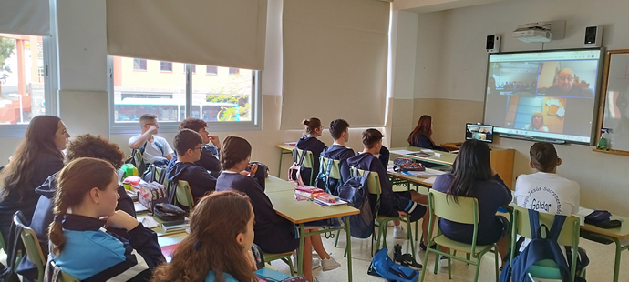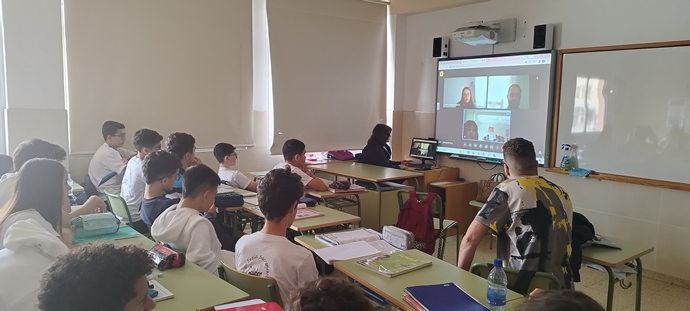 Los alumnos de 4 ESO han participado en una videoconferencia con el ministerio de interior y con el vicepresidente de la AVT D. Víctor López, guardia civil víctima de una pancarta bomba de la banda terrorista ETA en Navarra en 2002. Para ello han trabajado previamente el terrorismo en España y, como cierre, han entrevistado a la citada víctima que ha contado su experiencia en primera persona y lo que ha supuesto en su vida y para su familia.