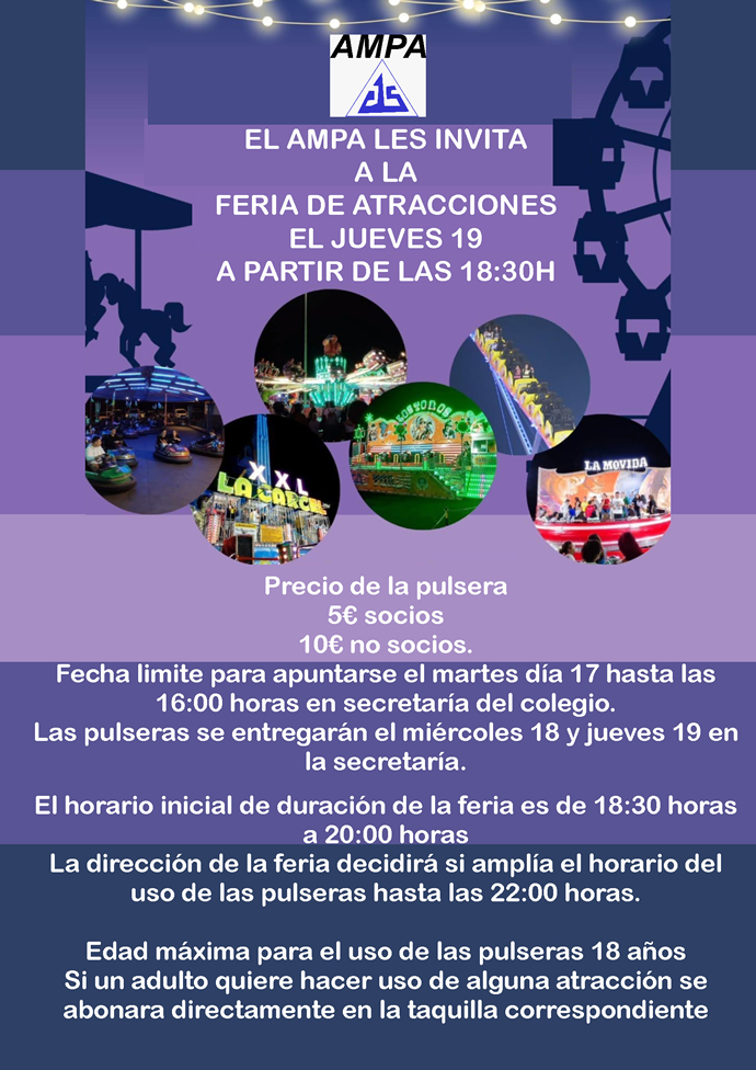 Estimadas familias, desde la directiva del AMPA queremos informar que tras la vuelta a la normalidad y retomando la programación tal y como veníamos haciendo antes de la pandemia, para el presente y siguiente trimestre se volverán con diversas actividades, manteniendo activa las que se están desarrollando desde el comienzo del curso.