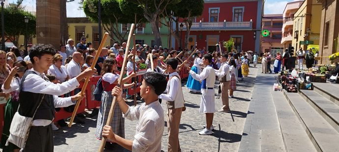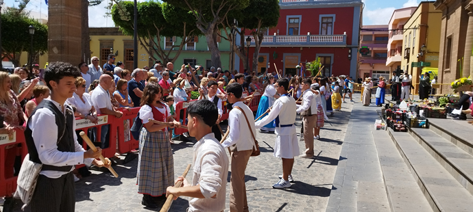 Cómo ya es tradición, los alumnos de 3º ESO exhibieron la lucha del garrote en honor a Santiago Apóstol en la tradicional romería escolar por el día de Canarias.